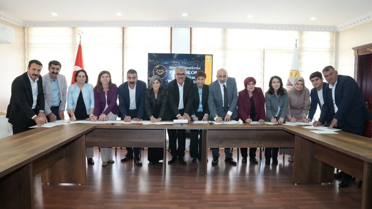 Büyükşehir Belediyesi Eşbaşkanları Serra Bucak ve Doğan Hatun, bu kapsamda iş birliği yapan kurumların temsilcileriyle Mandıra Tesisi Kurulum Protokolü imza töreni gerçekleştirdi.