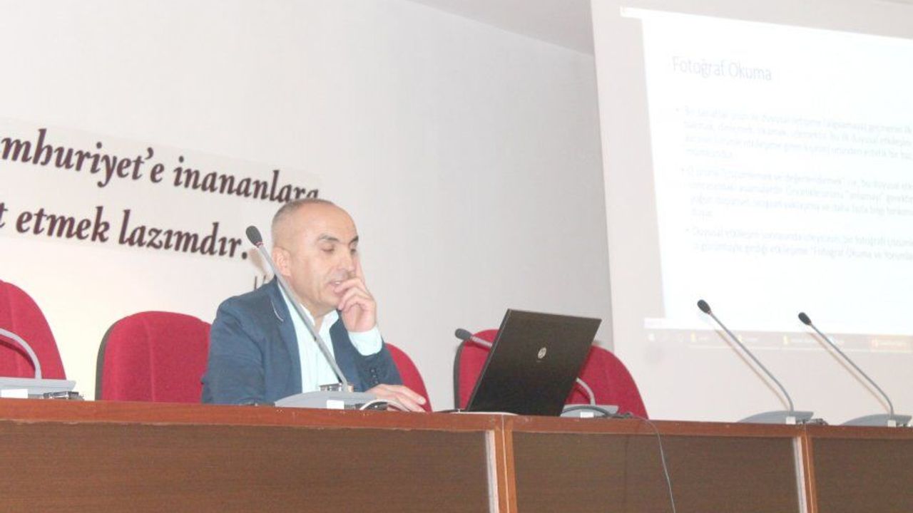 Fotoğraf okuma ve çekim tekniklerine dair deneyimlerini katılımcılarla paylaşan Öğr. Gör. Mesut Öztürk, fotoğrafla uğraşan insanın çevresine asla zarar veremeyeceğini belirtti. Sanatla iç içe olan birinin çevresine katkıda bulunup yardımcı olacağına değinen Öğr. Gör. Öztürk, aynı zamanda pek çok şeyden de haberdar olduğunu dile getirdi. Görüntü okuryazarlığı konusunda uzun zamandır çalışmalar yaptığını ifade eden Öztürk, öğrencilere fotoğraf çekerken dikkat edilmesi gerekenler ve teknik detaylar ile ilgili bilgiler verdi. Öğrencilerin de katılımıyla birlikte eğitim havasında geçen konferans kapsamında Öğr. Gör. Mesut Öztürk, fotoğraf çekim teknikleri konusunda katılımcılara uygulamalar yaptırdı. (HM)