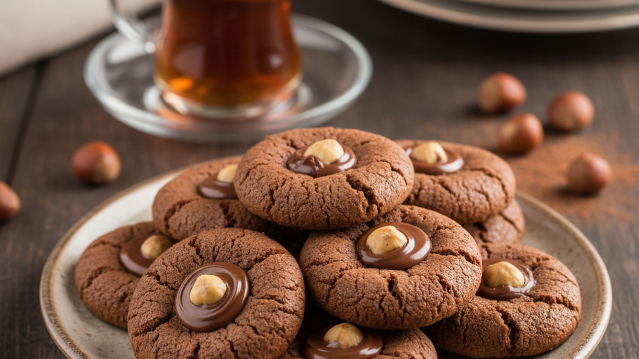 5. Servis Edin (Opsiyonel Süsleme): Kurabiyeler ilk sıcaklığını attıktan sonra üzerindeki çukurlara küçük bir parça Nutella ekleyebilir ve üzerine birer bütün fındık yerleştirebilirsiniz. Tamamen soğuduktan sonra servis yapın.