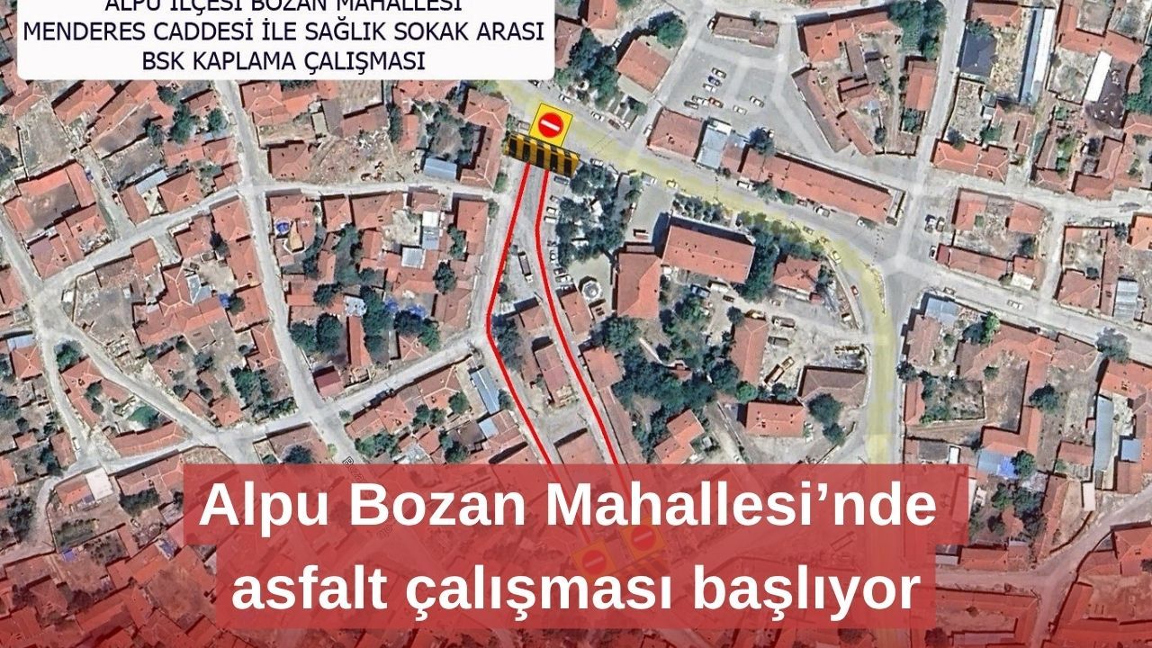 Eskişehir Büyükşehir Belediyesi Yol Yapım Bakım ve Onarım Dairesi Başkanlığı, Alpu ilçesi Bozan Mahallesi’nde BSK asfalt kaplama çalışması gerçekleştireceğini açıkladı.