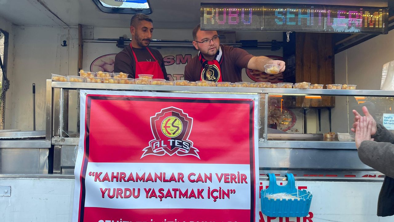 Eskişehirspor’un taraftar gruplarından ALTES, Azerbaycan–Gürcistan sınırında Milli Savunma Bakanlığına ait C130 nakliye uçağının düşmesi sonucu şehit olan 20 asker için anlamlı bir anma gerçekleştirdi. Kahraman askerlerin naaşları Ankara’daki törenin ardından memleketlerine uğurlanırken, ALTES grubu Reşadiye Camii önünde lokma hayrı yaparak şehitlerin ruhuna dua etti. Vatandaşların yoğun ilgi gösterdiği etkinlikte, birlik ve dayanışma duyguları ön plana çıktı. Taraftarlar, sosyal medya üzerinden yaptıkları paylaşımda “Vatan uğruna can veren tüm kahramanlarımızı rahmet, minnet ve saygıyla anıyoruz. Ruhları şad, mekânları cennet olsun” mesajıyla tüm şehitleri andı.