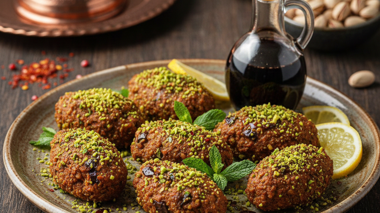 Geleneksel mercimek köftesine yepyeni bir boyut katmaya ne dersiniz? Klasik tarifin içine eklenen közlenmiş patlıcanın isli aroması ve çıtır Antep fıstığının dokusuyla bu meze, davet sofralarınızın yıldızı olacak.