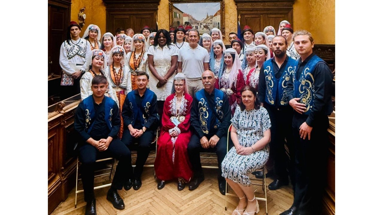 Festival programı çerçevesinde, Halkbilim ve Araştırmaları Merkez Müdür Yardımcısı Öğr. Gör. Ahmet Şamil Erkoçak ve dansçılar, Belçika’nın Saint-Josse-ten-Noode Belediye Başkanı Emir Kır’ı makamında ziyaret etti.
