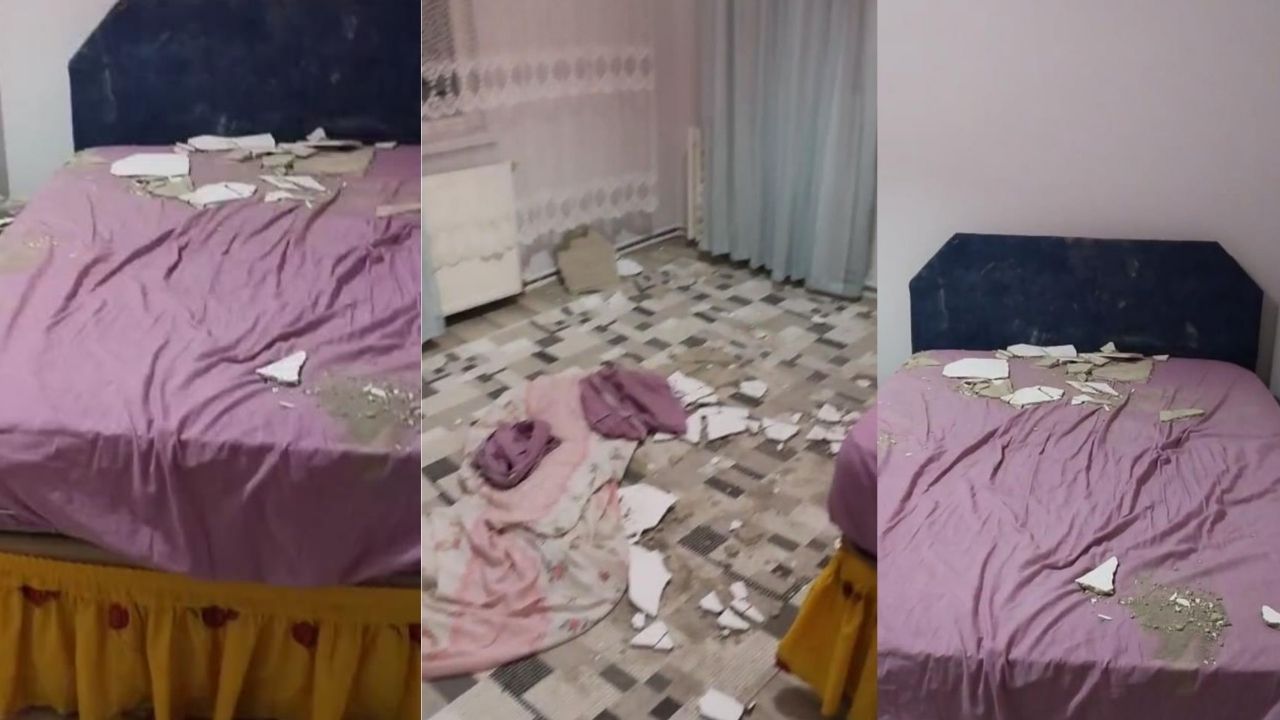 Burdur'da uyudukları esnada asma tavanın üzerlerine çökmesiyle yaralanan kadın, tedavisinin ardından hastaneden taburcu oldu. Molozlardan dolayı harabeye dönen oda ise çift tarafından görüntülendi.