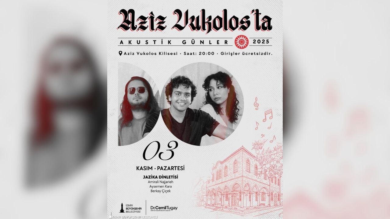 İzmir Büyükşehir Belediyesi Kültür, Sanat ve Sosyal İşler Dairesi Başkanlığı tarafından, kent kültürüne katkı sağlamak ve müzikal çeşitliliği desteklemek amacıyla “Aziz Vukolos’ta Akustik Günler” konser etkinliği düzenlenecek. Etkinlik programında, farklı müzik türlerini bir araya getiren zengin bir repertuvar yer alıyor.