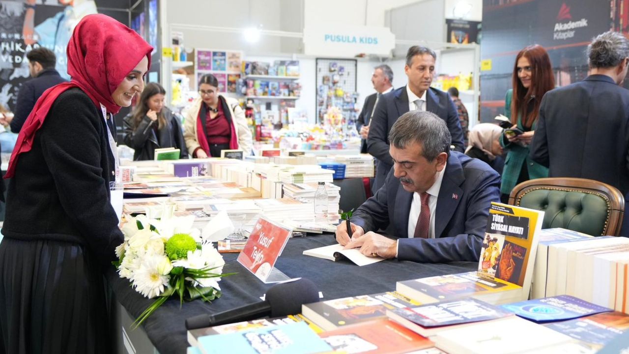 Fuar alanındaki stantları gezen Bakan Tekin, öğrencilerle bir araya geldi ve hatıra fotoğrafı çektirdi. Ziyareti sırasında vatandaşlarla sohbet eden Tekin, çocuklara kitap hediye etti.