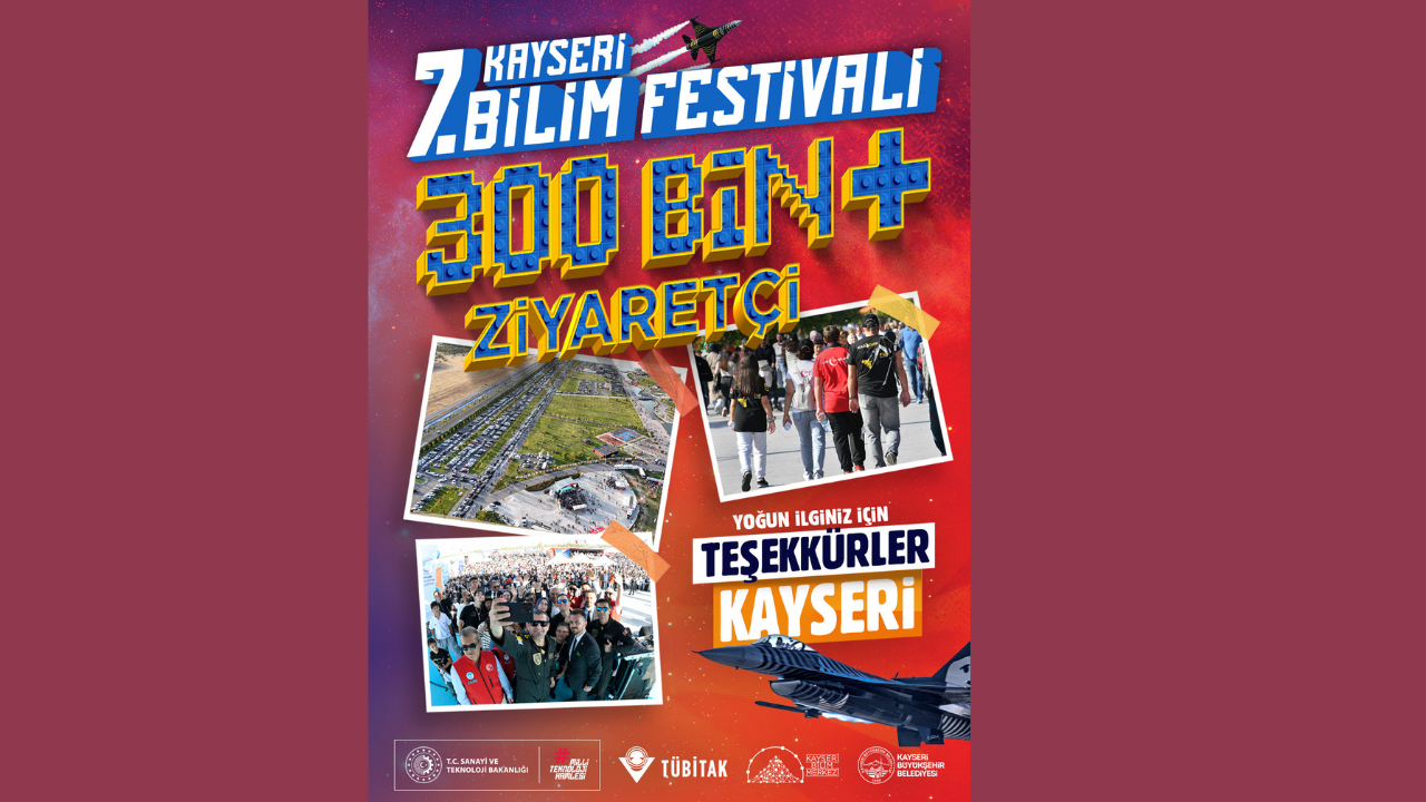 Kayseri Büyükşehir Belediye Başkanı Dr. Memduh Büyükkılıç, bu yıl 7’ncisi düzenlenen ve 3 gün boyunca 300 binden fazla bilim tutkununu ağırlayan Kayseri Bilim Festivali’ne gösterilen yoğun ilgi için tüm Kayserililere ve ziyaretçilere teşekkür etti. Festival, bilim, teknoloji ve uzay meraklılarına unutulmaz anlar yaşattı.