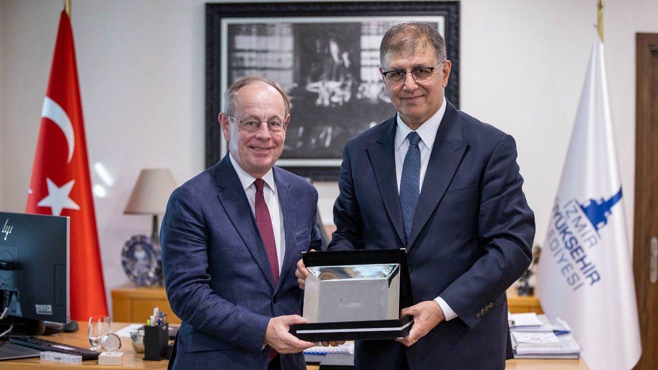 İzmir Büyükşehir Belediye Başkanı Dr. Cemil Tugay, Avrupa Komisyonu Çevre Genel Müdürlüğü Genel Müdür Vekili ve Avrupa Birliği (AB) İklim Nötr ve Akıllı Şehirler Misyonu Yöneticisi Patrick Child’ı ağırladı. Başkan Tugay’ı makamında ziyaret eden Patrick Child, kente dair gözlemlerini anlattı. Tugay ve Child daha sonra İklim Yurttaş Meclisi üyeleri ile İzQ Girişimcilik Merkezi’nde bir araya gelerek Yurttaş Meclisi’nin oturumuna katıldı ve üyelerin sorularını yanıtladı.