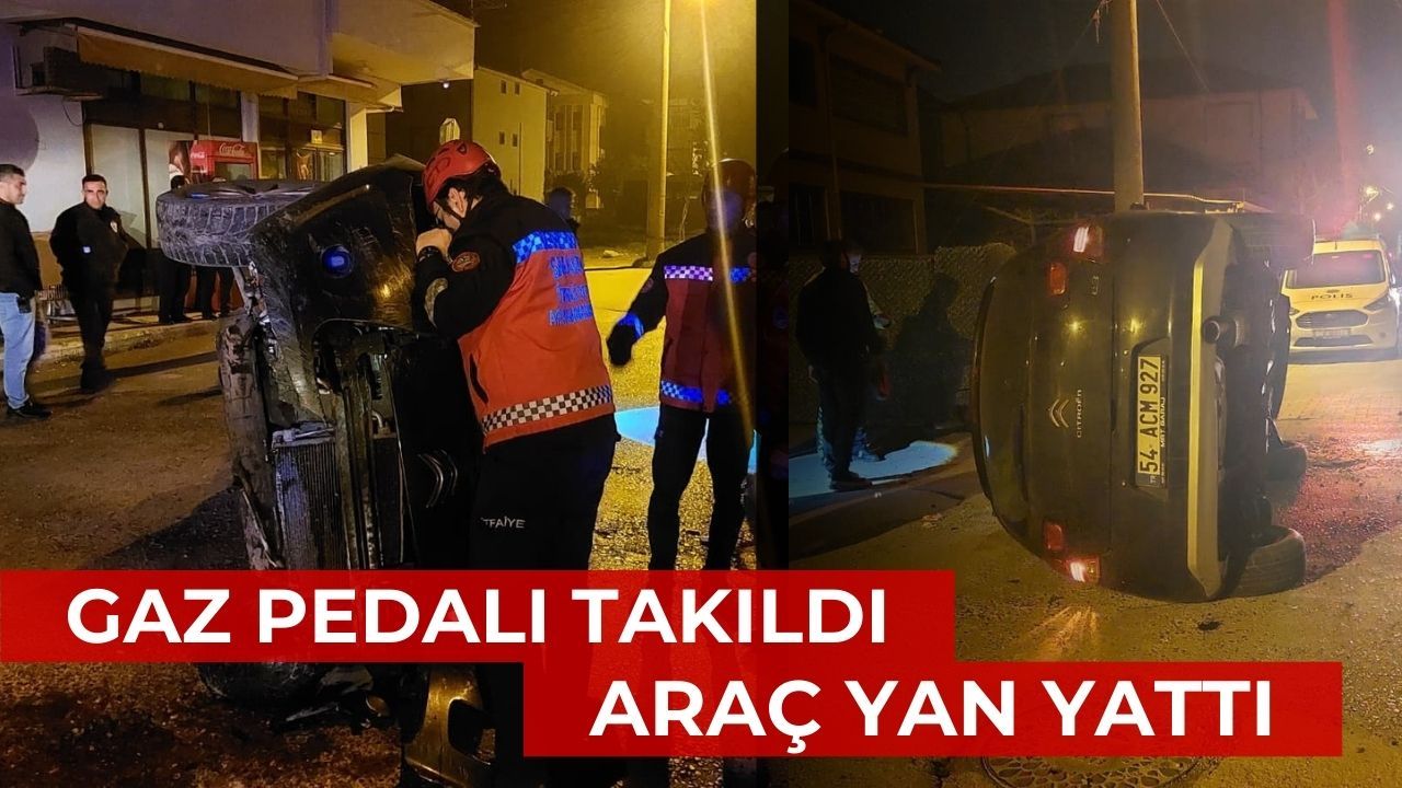 Kaza, Akyazı Konuralp Mahallesi 2007. Sokak’ta meydana geldi. R.S. idaresindeki 54 ACM 927 plakalı otomobilin gaz pedalı iddiaya göre takılı kaldı. Kontrolden çıkan araç, yol kenarındaki bir evin beton çitine çarparak yan yattı. İhbar üzerine bölgeye sağlık, polis ve itfaiye ekipleri sevk edildi.