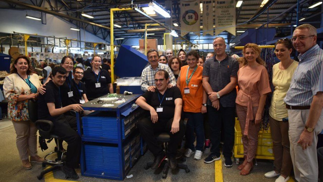 Gençler ile fabrikanın üretim alanında bir araya gelen Başkan Ataç yaptığı değerlendirmede, “Fabrika sahibi Hakan Kılıç ile bir görüşmemizde, kendisine Organize Sanayi Bölgesi’nden gelen parçaların montajlandığı bir atölyemiz olduğundan bahsetmiştim. Atölyemizde 45’e yakın özel çocuğumuz çalışıyor. Amacımız eğer başarabilirsek, diğer çocuklarımızı da Organize Sanayi Bölgesi’ndeki fabrikalara yerleştirebilmek. Çünkü çocuklarımız çalıştığı sürece aileleri mutlu oluyor, kendi işlerine bakabiliyor. Çocuklarımız ise hem emeklerinin karşılığında para kazanıyor hem de başarılı olmanın mutluluğunu yaşıyor. Diğer çalışan arkadaşlarımız da gençlerimizi çok iyi karşıladılar. Burada büyük bir oranda kadınlarımız çalışıyor; bu gerçekten çok önemli. Aynı zamanda bizim zihinsel yetersizliği bulunan özel çocuklarımız da buradalar. Buradaki bacılarımız, çocuklarımıza yardım ediyorlar ve birlikte çalışıyorlar. Onlar da Montaj Atölyesi’nde öğrendiklerini burada uyguluyor. Buradaki memnuniyet çok fazla, çok büyük bir mutluluk kaynağı… Yeni mesai arkadaşları ile çok güzel ilişkiler kurmuşlar. Buradaki güzellik tüm Türkiye’ye ve Eskişehir’deki fabrikalara örnek olsun” ifadelerini kullandı.