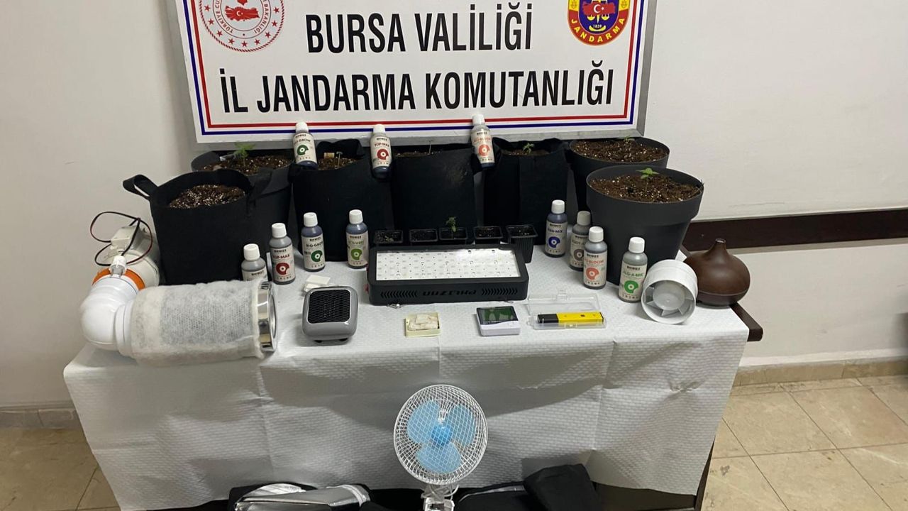 Gemlik ilçesi Cumhuriyet Mahallesi'nde yapılan operasyonda ise 7 kök kenevir bitkisi, 2 gram kenevir tohumu ile iklimlendirme sistemi ve uyuşturucu madde üretiminde kullanılan çok sayıda ekipman bulundu.