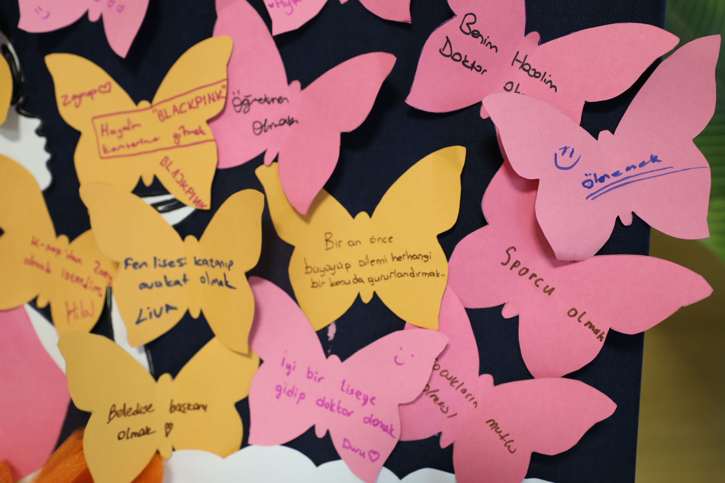 Türkan Saylan Çağdaş Yaşam Merkezi’nde bulunan Menteşe Sende Gel Engelsiz Kafe, Oyuncak Kütüphanesi ve Yatağan Yeşilbağcılar Sosyal Hizmet Merkezi’nde kurulan panolar, kız çocuklarının kaleminden dökülen umut dolu mesajlarla doldu. Çocuklar, gelecekte olmak istedikleri meslekleri, yaşamak istedikleri dünyayı ve sahip olmak istedikleri hakları yazılı notlar ve resimlerle paylaştı.