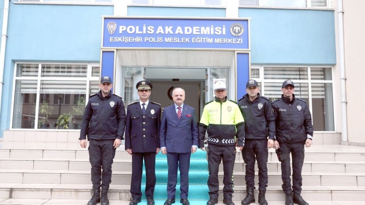 Ziyaretten dolayı duyduğu memnuniyeti ifade eden İl Emniyet Müdürü Dinç ise, Türk Polis Teşkilatının geçmişten bugüne başarılarla dolu bir tarihi olduğunu ve bu teşkilatın mensubu olmaktan büyük bir gurur duyduğunu söyledi. Eskişehir Polis Meslek Eğitim Merkezi’ne gelişinde Eskişehir Polis Meslek Eğitim Merkezi Müdürü Muzaffer Doğanay ve şube müdürleri tarafından karşılanan Vali Çakacak, daha sonra müdürlük makamına geçti. Kuruluşundan bu yana sürekli kendini geliştiren ve yenileyen Türk Polis Teşkilatı’nın, çağdaş teknolojileri kullanarak suç ve suçluyla mücadelede sadece yurt içinde değil, uluslararası alanda da gurur verici başarılara imza attığını dile getirdi. Müdür Doğanay da, 174 yıldır milletine hizmet etmeyi, Hakk’a hizmet etmek olarak gören Türk Polis Teşkilatı’nın bir mensubu olmanın verdiği haklı gururu yaşadıklarını belirterek, yapılan çalışmalar hakkında Vali Çakacak’a bilgi verdi. (İHA)