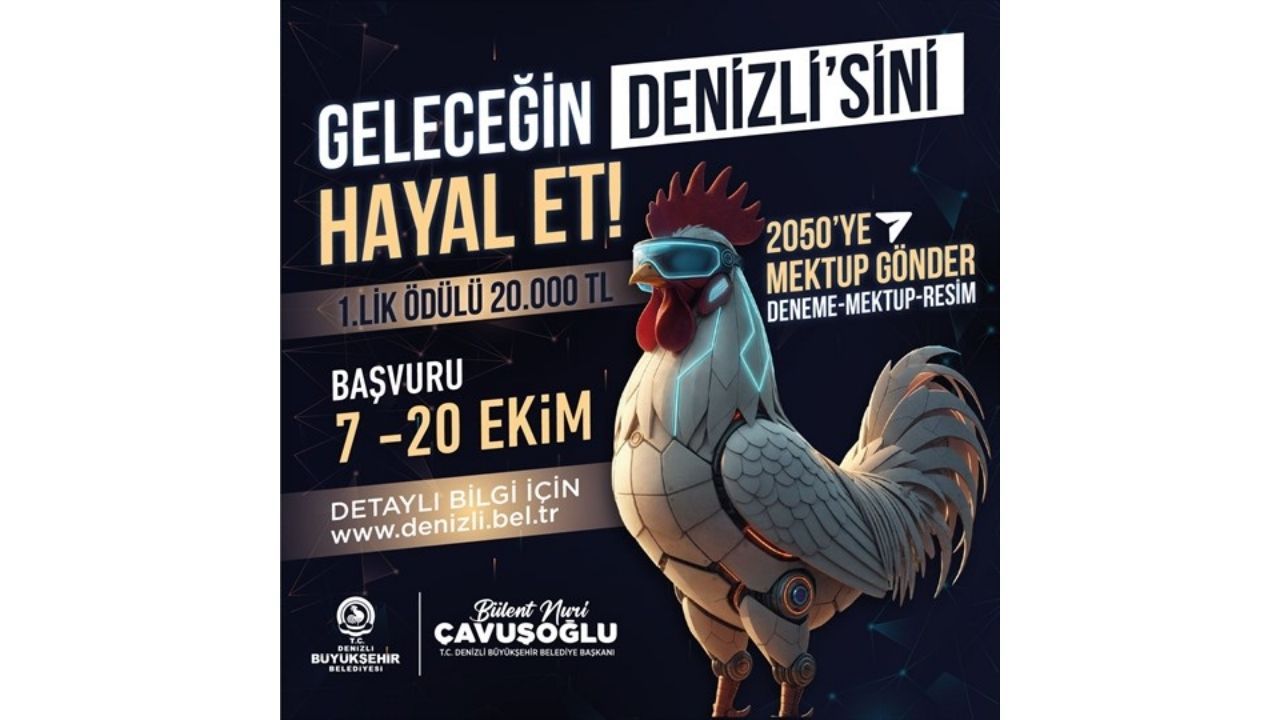 Denizli Büyükşehir Belediyesi, Cumhuriyet’in 102. yılı kutlamaları kapsamında anlamlı bir etkinliğine imza atıyor. “2050’ye Mektup: Geleceğin Denizli’sini Hayal Et” adlı yarışma ile katılımcılar, 2050 yılının Denizli’sini hayal edip resim, deneme veya mektup türünde eserlerle anlatacak. Yarışmanın amacı, çocuklardan yetişkinlere kadar her yaştan bireyin geleceğe dair umutlarını, vizyonlarını ve fikirlerini paylaşmalarını sağlamak. Yarışma kapsamında katılımcılardan; Denizli’nin kültürel, sosyal, çevresel ve teknolojik gelişmelerine dair düşlerini aktarmaları, böylece kentin ortak geleceğine ilham verecek bir hafıza oluşturmaları bekleniyor.