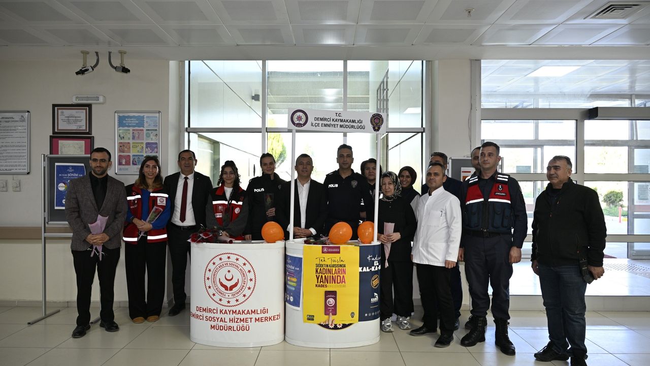 Manisa'nın Demirci ilçesinde 25 Kasım Kadın Yönelik Şiddete Karşı Uluslararası Mücadele günü dolayısıyla kurulan stantta vatandaşlara bilgilendirme broşürleri dağıtıldı.