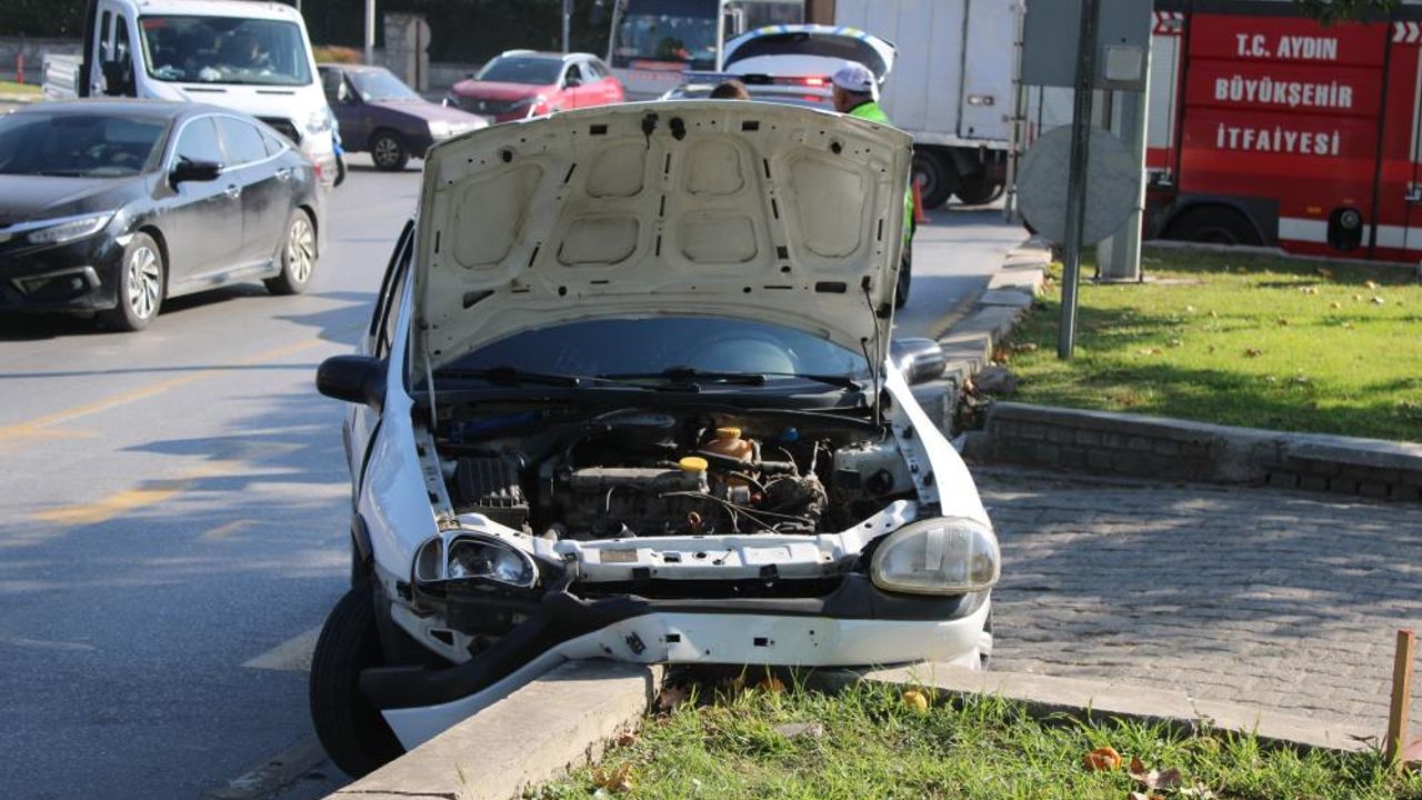 Aydın'ın Efeler ilçesinde 17 yaşındaki ehliyetsiz sürücü, direksiyon hakimiyetini kaybetmesi sonucu refüje çarparken, kazada 2 kişi yaralandı.