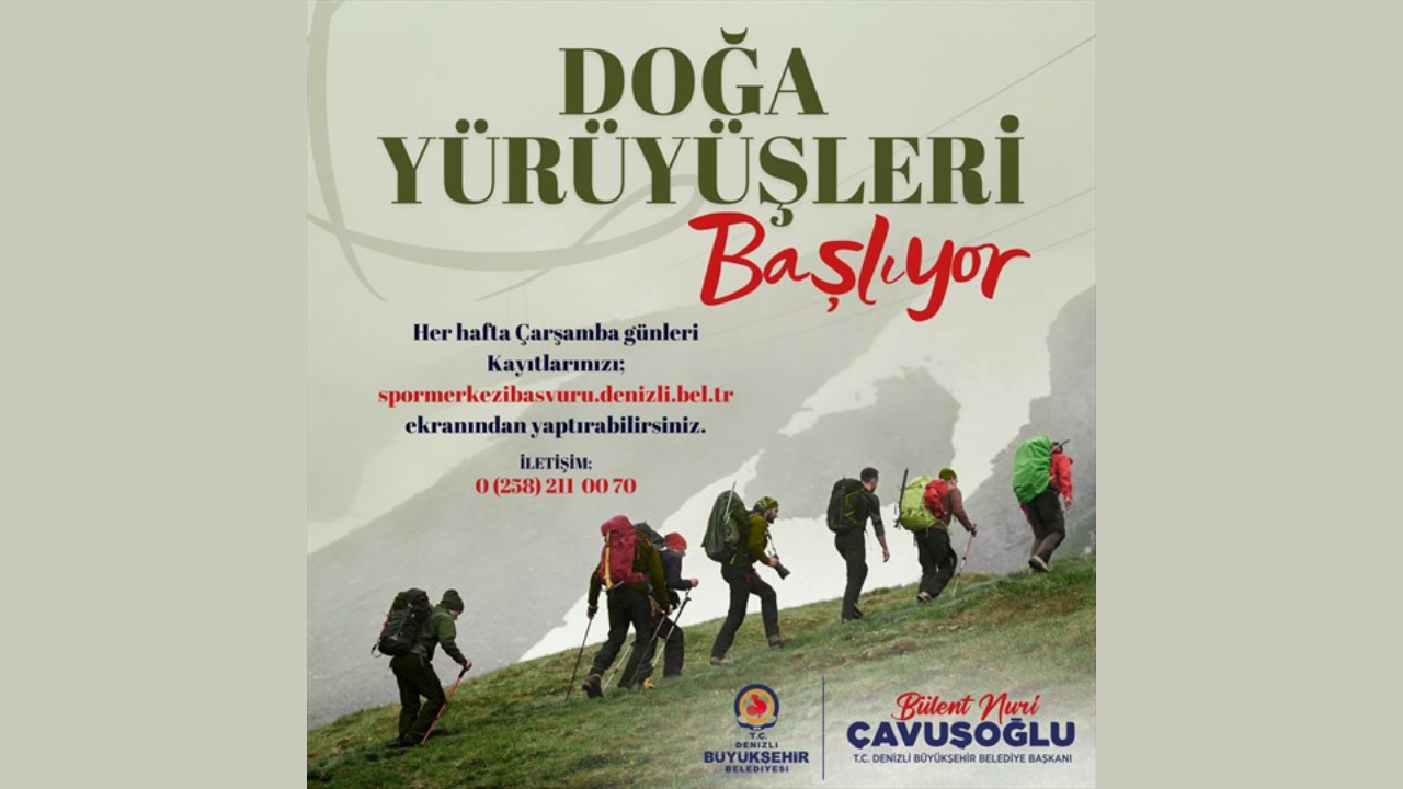 Her hafta Pazar günü gerçekleştirilecek olan doğa yürüyüşleri için kayıtlar, her hafta Çarşamba günü açılacak. O hafta yapılacak yürüyüşe katılacak olan vatandaşlar başvurularını, spormerkezibasvuru.denizli.bel.tr adresi üzerinden online olarak yapabilecek. Detaylı bilgi almak isteyen doğaseverler, 0258 211 00 70 numaralı telefondan iletişime geçebilir.