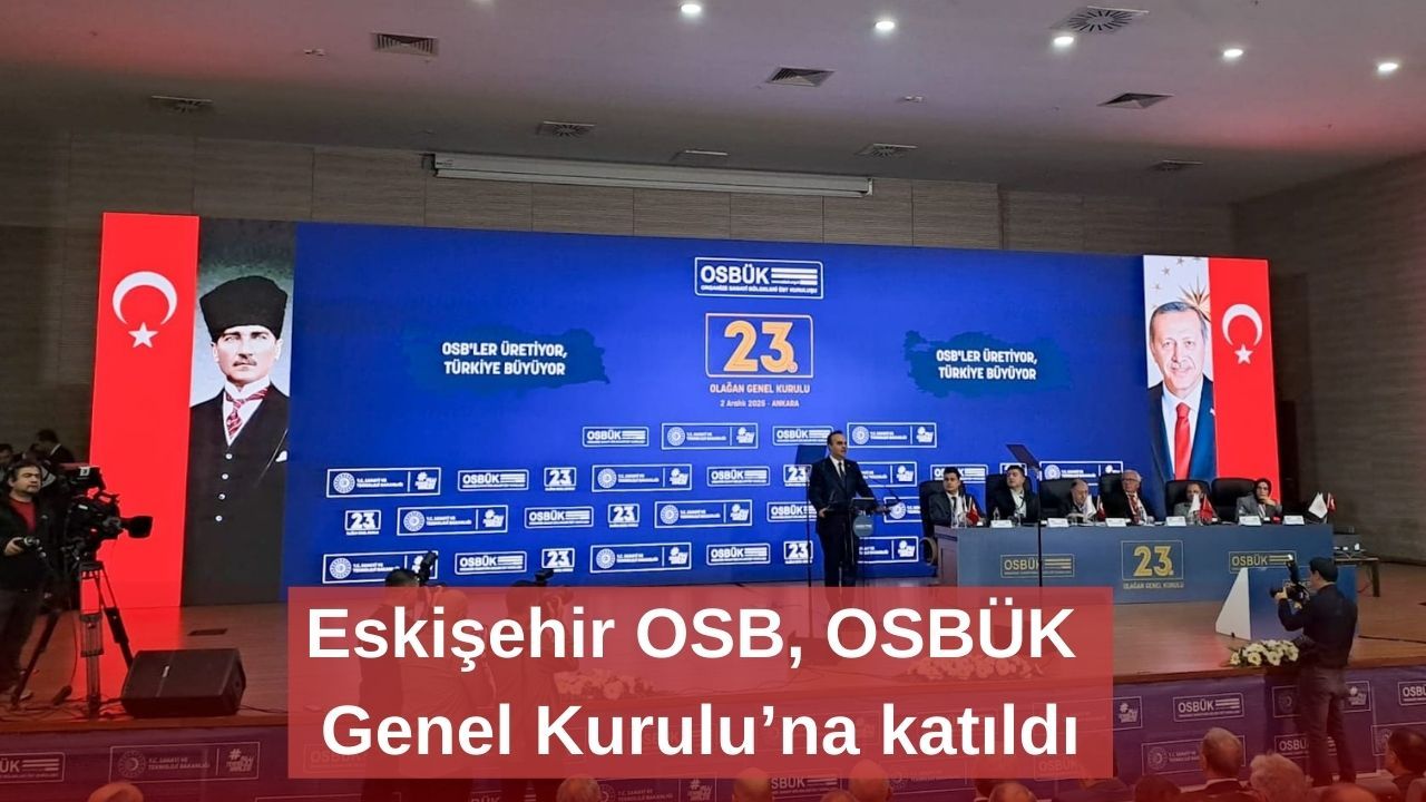 Genel kurulda Türkiye’nin sanayi politikaları, üretim hedefleri ve OSB’lerin geleceğine yönelik değerlendirmeler yapılırken, Eskişehir OSB heyeti güçlü temsil ile toplantıda yer aldı. Yapılan açıklamada, “Eskişehir OSB olarak ülkemizin sanayi politikalarına katkı sunmaya, güçlü temsil ve etkin katılımla çalışmalarımızı sürdürmeye devam edeceğiz.” ifadelerine yer verildi.