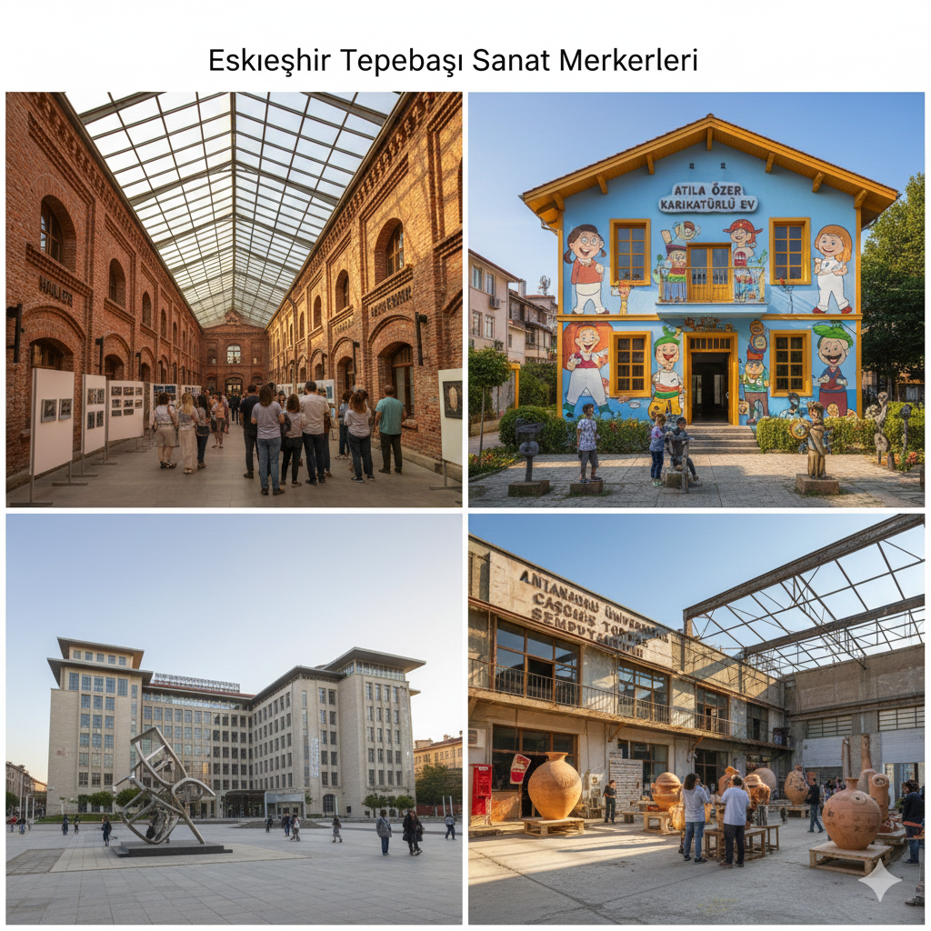 Tepebaşı denilince akla gelen en özgün sanat etkinliği Pişmiş Toprak Sempozyumu'dur. Bu etkinlik süresince ortaya çıkan devasa heykellerin nerede sergilendiği, yani Eskişehir Tepebaşı'nda sergi ve sanat merkezleri neredeler konusu büyük merak uyandırır. Sempozyum alanı olarak kullanılan eski fabrika sahaları, etkinlik süresince canlı birer atölyeye ve sergi alanına dönüşür. Sanatçılar eserlerini halkın gözü önünde yaparken, Tepebaşı sokakları da bu eserlerin kalıcı sergi alanı haline gelir.
