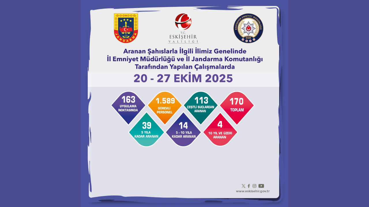 İl Emniyet Müdürlüğü ve İl Jandarma Komutanlığı ekipleri, 20–27 Ekim 2025 tarihleri arasında aranan şahıslarla ilgili kapsamlı denetimler gerçekleştirdi.