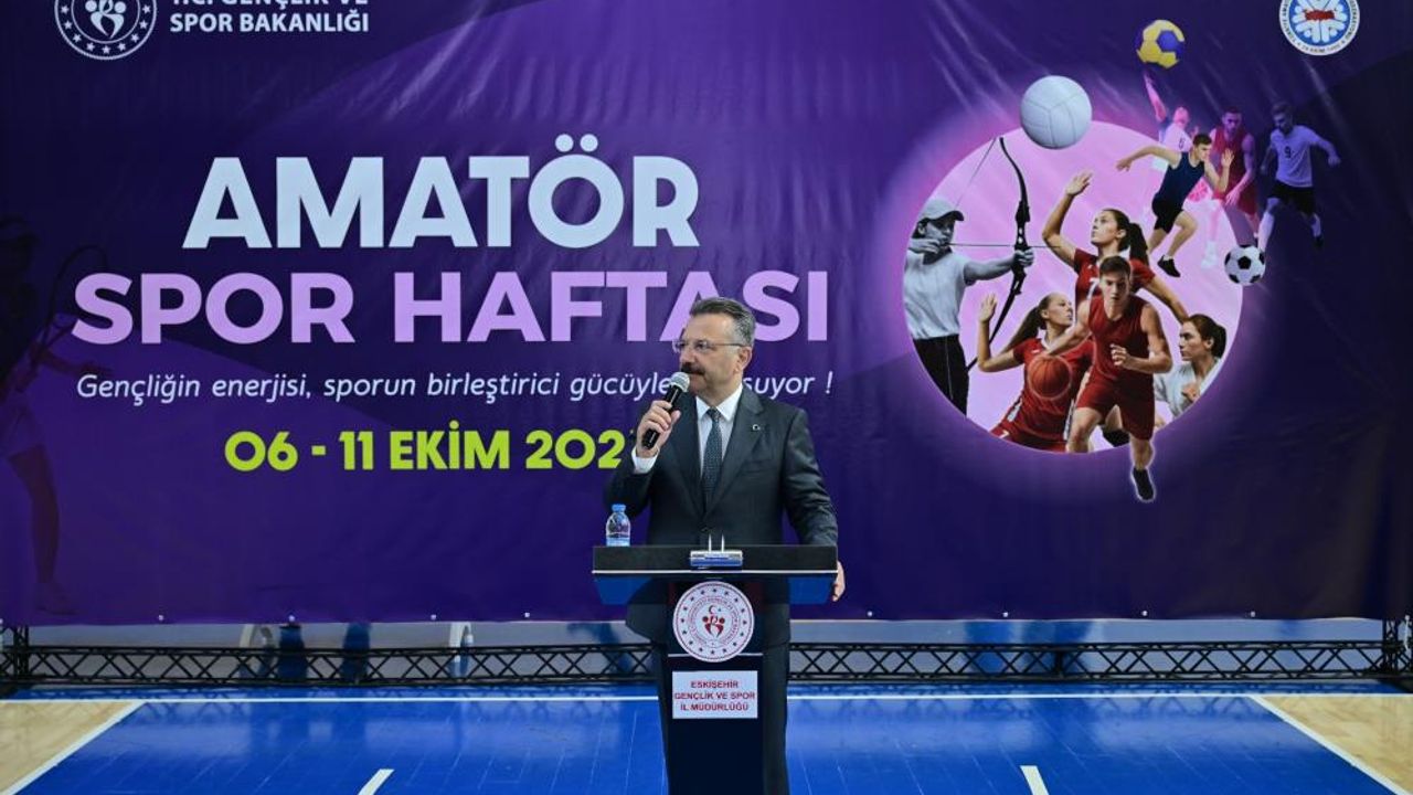 Amatör spor kulüplerinin önemli görevler üstlenerek gençlerin fiziksel ve ruhsal gelişimine katkı sunduğunu belirten Vali Aksoy, "Eskişehir’de amatör sporların gelişmesi adına Gençlik ve Spor İl Müdürlüğümüz ile birlikte yürüttüğümüz çalışmalar olumlu sonuçlar veriyor. Geçtiğimiz yıla göre lisanslı sporcu sayımız yaklaşık 2 bin artışla 8 bine yaklaşmış durumda. İlimizde 273 amatör spor kulübü faaliyet göstermekte ve sporun her branşında başarı hedefiyle çalışmalar yürütülmektedir. Milli Eğitim Müdürlüğümüzle iş birliği içinde, öğrencilerimizin eğitim süreçlerinde en az bir spor, sanat ya da müzik dalıyla ilgilenmesini teşvik eden özel projeler uyguluyoruz. Gençlik ve Spor Bakanlığımızın destekleriyle ilimizde spor altyapısının güçlendirilmesine yönelik çalışmalarımız da devam ediyor. Okul bahçelerine halı saha, voleybol ve basketbol sahaları kazandırarak çocuklarımızın daha çok spor yapabilecekleri ortamlar oluşturuyoruz. Ayrıca, amatör spor kulüplerimizin faaliyetlerini daha iyi şartlarda sürdürebilmeleri için yeni spor tesisleri yapım çalışmalarımız sürmektedir. Bu vesileyle Amatör Spor Haftası’nı kutluyor, tüm sporcularımıza ve antrenörlerimize başarılar diliyorum" ifadelerini kullandı.