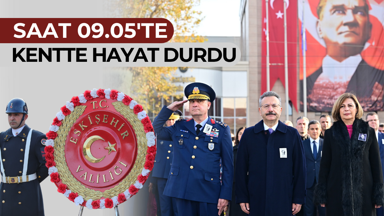 Saat 09.05’te sirenlerin çalmasıyla birlikte Eskişehirliler, Atatürk’e olan sevgi ve minnetlerini göstermek üzere iki dakikalık saygı duruşunda bulundu. Ardından askeri bando eşliğinde İstiklal Marşı okundu ve bayraklar yarıya indirildi.