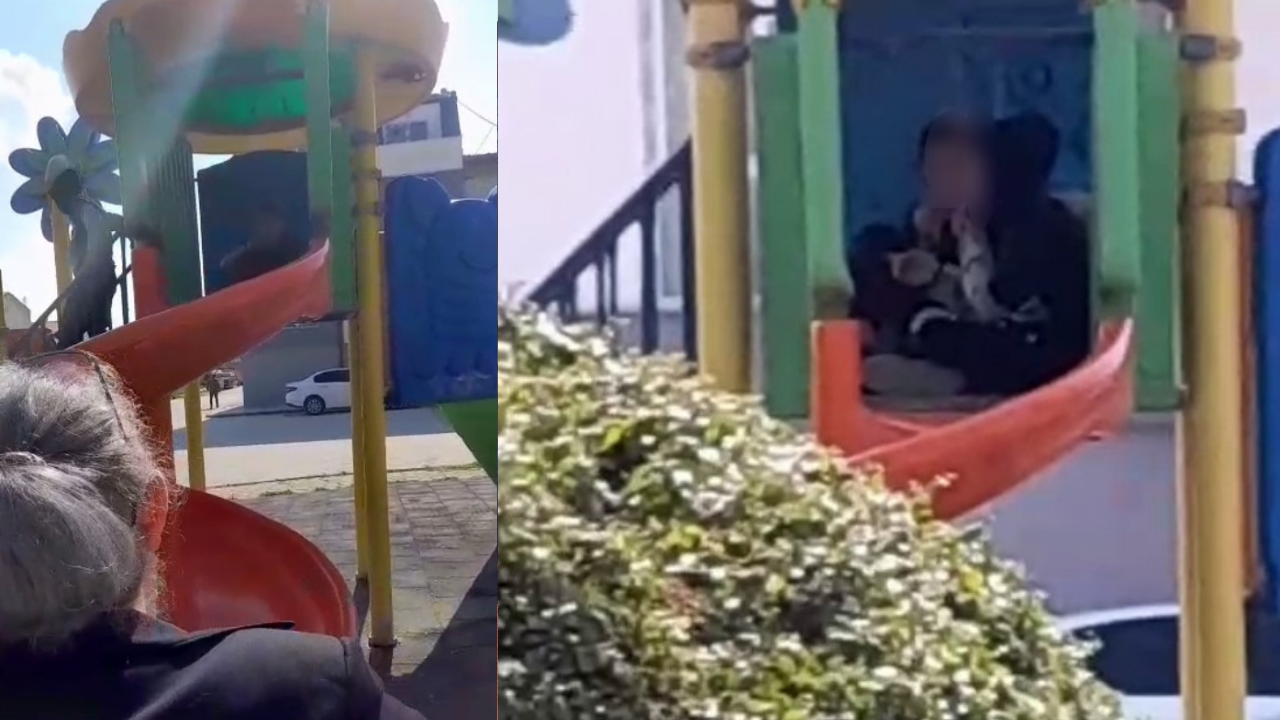 Olay, Yeşiltepe Muhtarlığı önündeki parkta meydana geldi. İki çocuğun kaydırağın gövdesine oturarak sigara içtiğini fark eden Mahalle Muhtarı Meryem Kuş Açıkgöz, duruma müdahale ederek çocukları uyardı. Uyarının ardından panikleyen çocuklar hızla parktan uzaklaştı.
