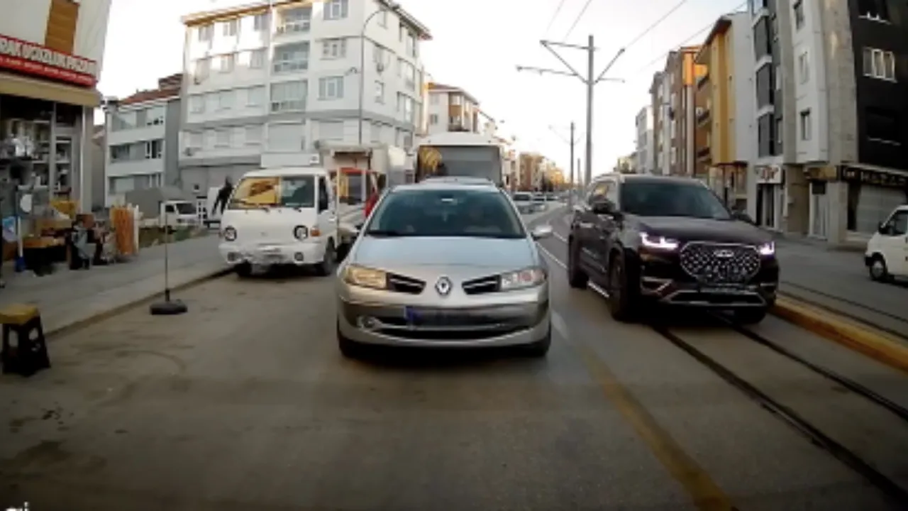 Eskişehir’in Tepebaşı ilçesinde bir otomobil tramvay raylarına girerek ilerledi. Araç daha sonra geri manevra yaparak hattan çıkmaya çalıştı. Olay, trafikte tehlikeli anlara neden oldu.