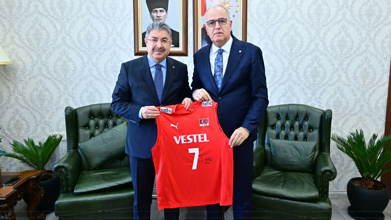 Türkiye Voleybol Federasyonu (TVF) Başkanı Mehmet Akif Üstündağ, Ocak 2026 itibarıyla Eskişehir Valiliği görevine başlayan Dr. Erdinç Yılmaz’ı makamında ziyaret etti. Eskişehir’in ev sahipliğinde gerçekleştirilen AXA Sigorta Kupa Voley müsabakalarının odak noktası olduğu görüşmede, şehrin spor organizasyonlarındaki stratejik önemi ve voleybolun yerel düzeyde geliştirilmesi için atılacak adımlar ele alındı. Vali Yılmaz, uluslararası standartlardaki organizasyonların Eskişehir’e kazandırılmasından duyduğu memnuniyeti dile getirdi.