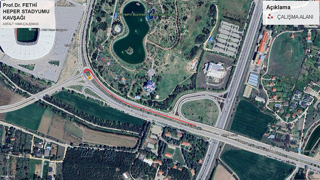 Eskişehir Büyükşehir Belediyesi Yol Yapım Bakım ve Onarım Dairesi Başkanlığı, ulaşım konforunu artırmak amacıyla Prof. Dr. Fethi Heper Stadyumu kavşağında asfalt yama çalışması başlatılacağını duyurdu.