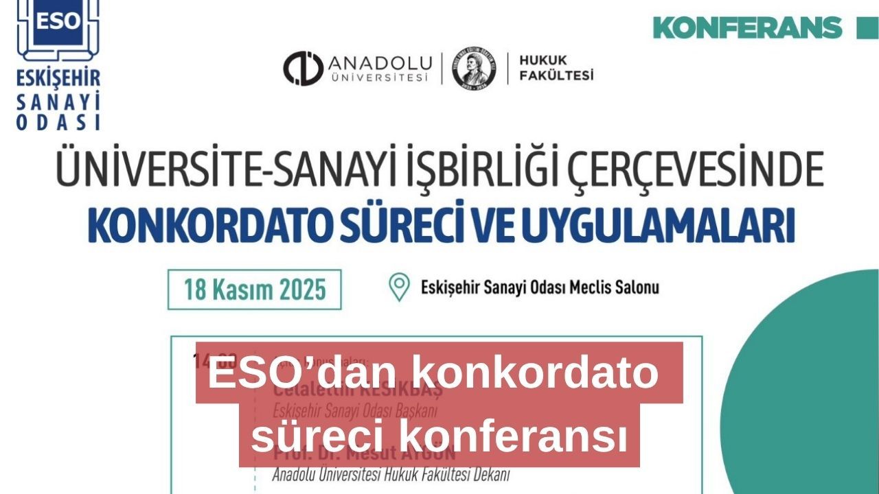 Eskişehir Sanayi Odası (ESO), Anadolu Üniversitesi Hukuk Fakültesi iş birliğiyle “Konkordato Süreci ve Uygulamaları” konulu bir konferans düzenliyor.