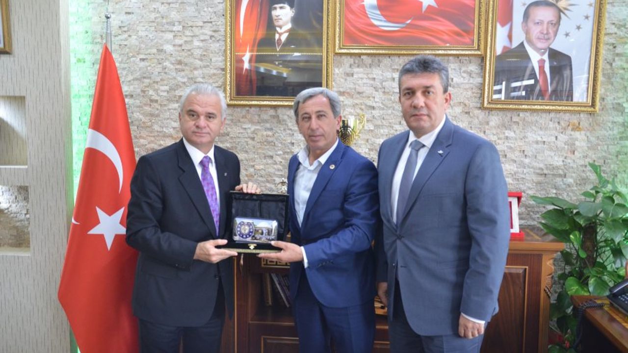 İlçe ziyaretleri kapsamında ETO Başkanı Güler, Günyüzü ilçesinde Başkan Durgut'u ziyaret etti. Ziyaret esnasında Eskişehir Ticaret Odası Başkanı Metin Güler'e Meclis Başkanı Halil İbrahim Ara, Yönetim Kurulu Başkan Yardımcısı Süleyman Kutlu ve beraberindeki yönetim kurulu üyelerinden oluşan heyet eşlik etti. Günyüzü Belediye Başkanı Menderes Durgut, Başkan Güler'e yöresel dokuma zili kilim ve Selçuklu dönemine ait tarihi şadırvanın fotoğrafı bulunan masa saati hediye etti. ETO Başkanı Güler de, Belediye Başkanı Durgut'a tablo hediye etti. Ziyaretin ardından belediye binası önünde hatıra fotoğrafı çektirildi. (İHA)