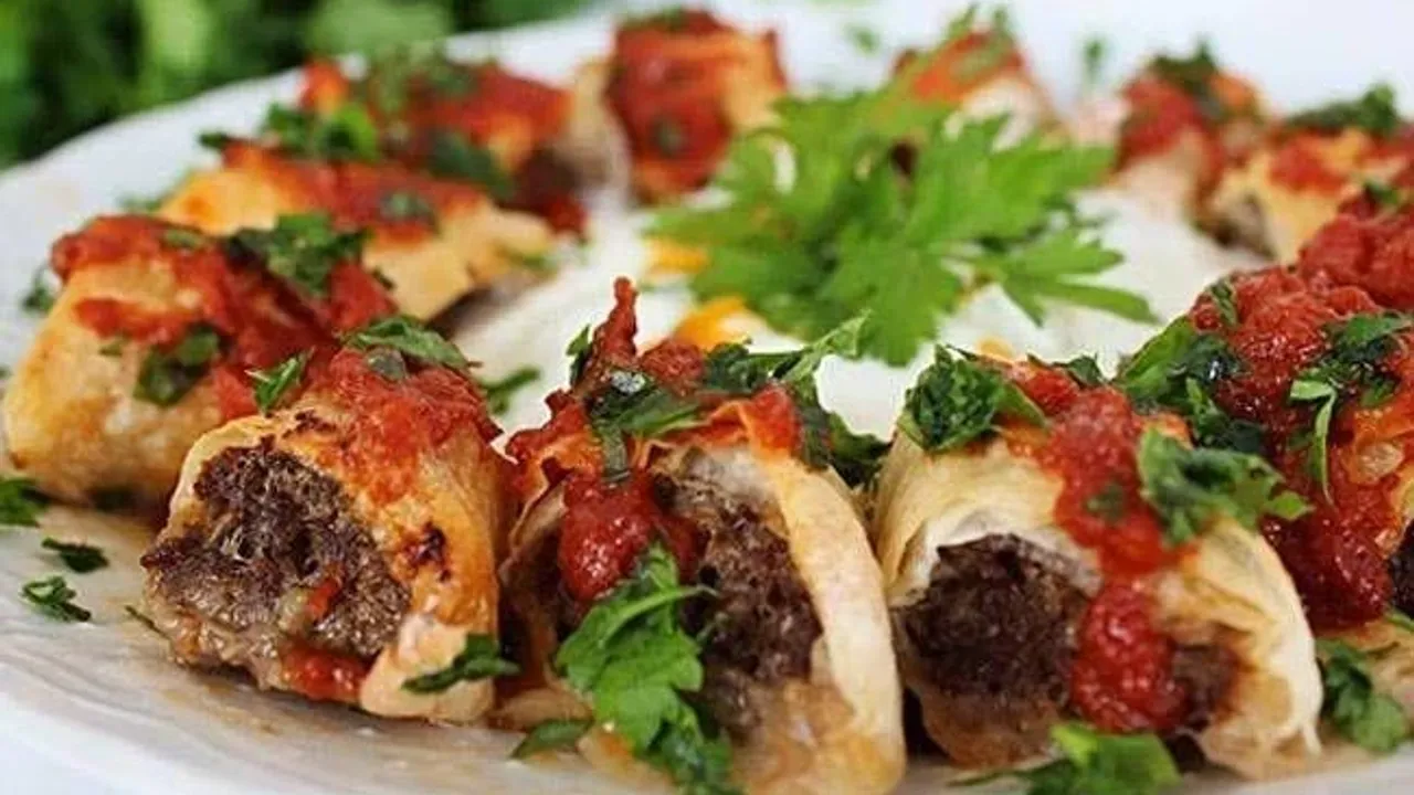 Yufkanın düz kısmına pişen köfteleri dizip rulo yapın.