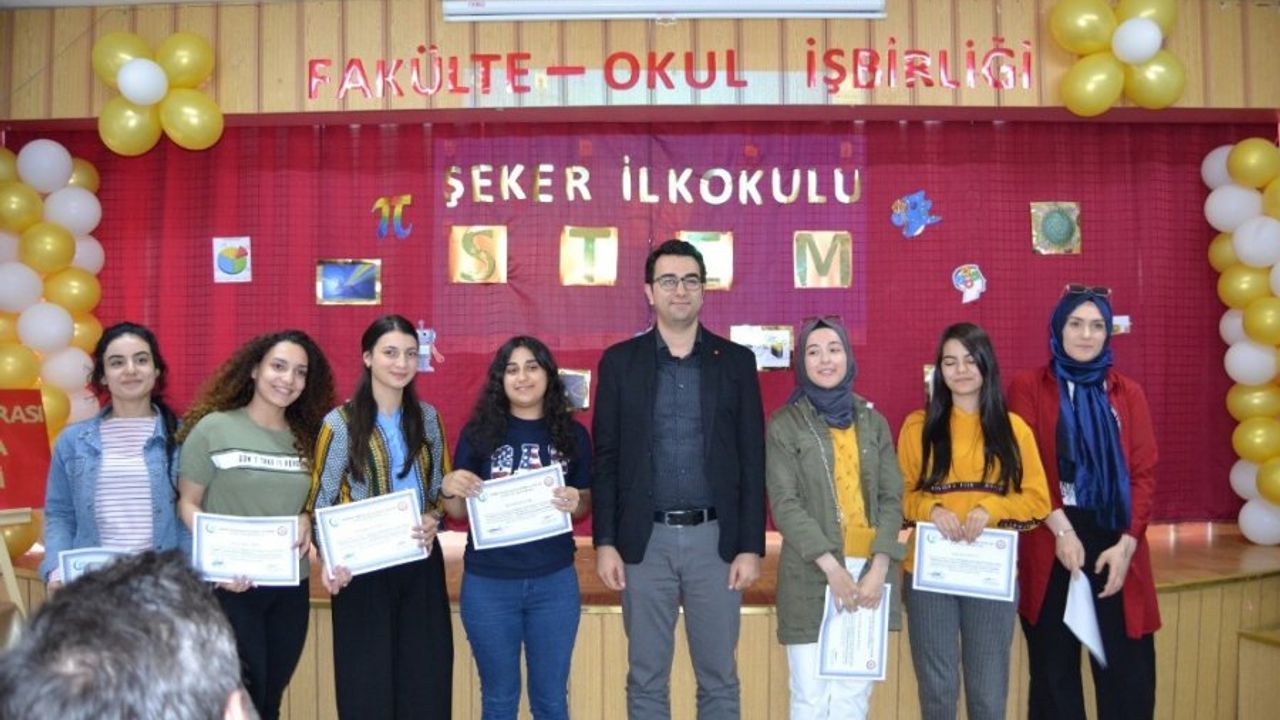 Üç aşamada gerçekleştirilen etkinliklerin ilk kısmında; 2018-2019 Güz Döneminde ESOGÜ Eğitim Fakültesi Dekan Yardımcısı ve Şeker İlkokulu Akademik Danışmanı Doç. Dr. Ersin Karademir tarafından 20 öğretmene toplam 80 saatlik uygulamalı disiplinlerarası STEM eğitimleri verildi. Bu eğitimlerle birlikte ESOGÜ Eğitim Fakültesi Sınıf Öğretmenliği programında öğrenim gören 40 öğretmen adayına da dersleri kapsamında benzer içerikli eğitimler verildi. Bu eğitimler yoluyla hem öğretmenler hem öğretmen adayları disiplinlerarası çalışma kültürü, kazanım temelli STEM çalışmaları ve uygulamaları konularında derinlemesine bilgi sahibi oldu. İkinci aşamada öğretmen-öğretmen adayları ve akademisyenler bir araya gelerek ilkokul öğrencilerinin ders kazanımlarına uygun olacak şekilde disiplinlerarası STEM etkinlikleri tasarladı. Üçüncü aşamada ise tasarlanan içerikler, 2018-2019 Bahar Döneminde beş hafta ve toplam 30 saat süren etkinlikler, yedi farklı sınıfta öğrenim gören 200’e yakın ilkokul öğrencisine uygulandı. Uygulamaların hepsi öğrencilerin ders kazanımlarıyla doğrudan ilişkili olup tamamı günlük hayatlarında karşılaşabilecekleri gerçek problemlerden oluşturuldu.