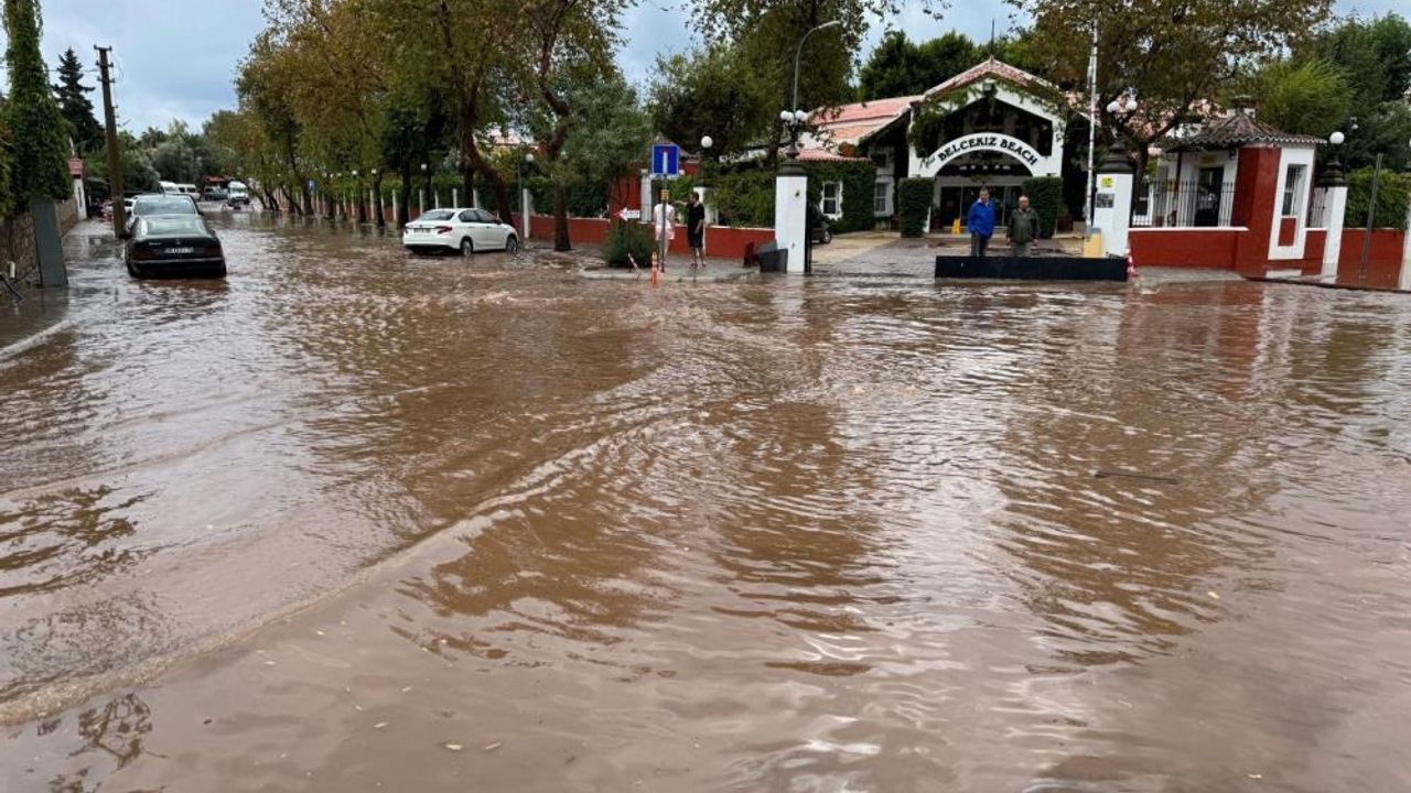 Muğla'nın Fethiye ilçesinde etkili olan kuvvetli yağış sonrası birçok ev ve işyeri sular altında kaldı yollar göle dönerken, vatandaşlar ve araç sürücüleri yağış nedeniyle zor anlar yaşadı. Sel suları denizin rengini kahverengiye dönüştürdü.