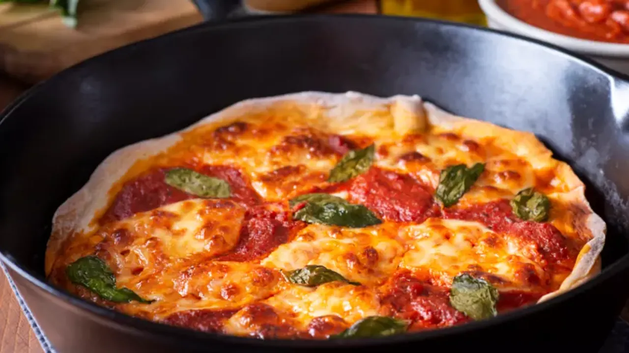 Pişirme Aşaması (5 Dakika): Tavanın üzerine bir kapak kapatın. Kapağı kapatmak, peynirin buharla hızla erimesini ve hamurun tabanının yanmamasını sağlar. Kısık ateşte yaklaşık 5 dakika kadar pişirin. Peynir tamamen eriyip sucuklar hafifçe kızardığında pizzanız hazırdır.