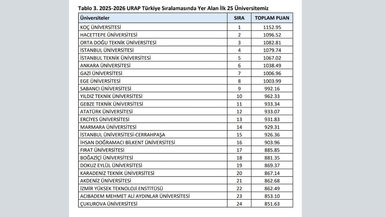 Orta Doğu Teknik Üniversitesi Enformatik Enstitüsü bünyesinde kurulan ve yükseköğretim kurumlarını çeşitli akademik ölçütlere göre değerlendiren bir kuruluş olan URAP (University Ranking by Academic Performance) tarafından yapılan 2025-2026 Türkiye sıralaması açıklandı. Buna göre FÜ, 2025-2026 sıralamasında da 17. sıradaki yerini korumayı başardı. Geçen yıl devlet üniversiteleri arasında 15. sırada yer alan FÜ, bu yıl 14. sırada yer alırken tıp fakültesi bulunan üniversiteler arasında 11. sırada yer aldı.