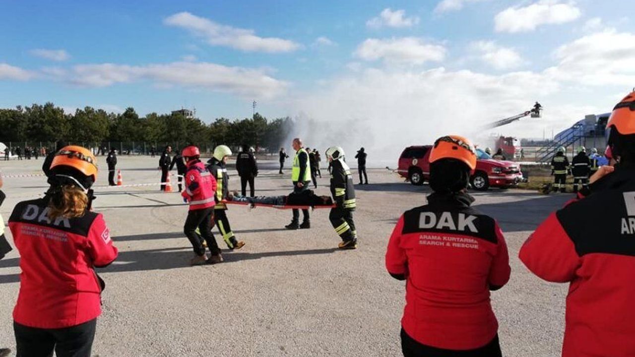 Hava Alanı Acil Durum Birimleri’nin koordinasyonunda yapılan test amaçlı tatbikata, hava alanının ilgili birim görevlilerinin yanı sıra itfaiye, acil servis ve AFAD’ın yanı sıra, sivil toplum kuruluşu olan UMKE, DAK, AKUT ekipleri yer aldı. Çok sayıda aracın katıldığı tatbikatta, yaklaşık 100 kişilik ekip, senaryo gereği iniş yaptıktan sonra kırıma uğrayan ve içinde yangın çıkan 40 yolcunun bulunduğu Boeing 727 tipi uçağa müdahale etti. Uçakta bulunan 15 kişi kendi imkânları ile çıkarken, 25 kişi de oluşturulan ekipler tarafından dışarı çıkartıldı, oluşan yangın söndürüldü. Tatbikat başarı ile tamamlanırken, ekiplerin uyum içinde çalışmaları dikkat çekti.