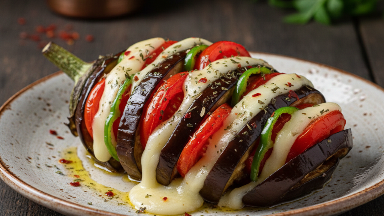 Patlıcanın o ağır yağlı kızartma halinden sıkılanlar için hem sağlıklı hem de sunumuyla hayran bırakacak bir tarifimiz var. Misafir sofralarınızda ana yemek olarak servis edebileceğiniz bu lezzet, düşük kalorisiyle de favoriniz olacak.