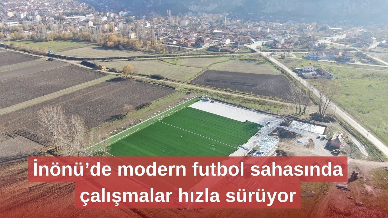 İnönü Belediyesi tarafından ilçeye kazandırılan modern futbol sahasında çalışmalar tüm hızıyla devam ediyor. Belediye ekipleri, sahada sentetik çim serimi ve çevre düzenlemeleri gibi önemli aşamaları tamamlamaya başladı.