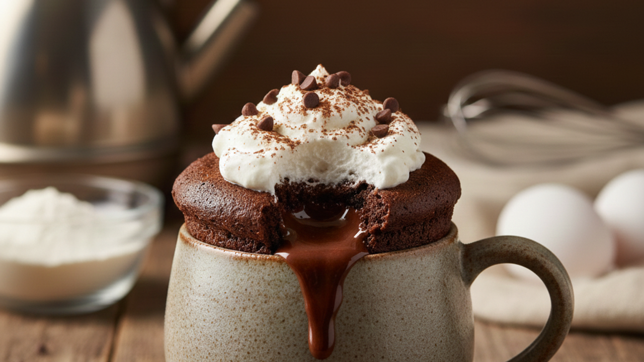 Sürpriz: Ortasına bir parça çikolata atarsanız içi akışkan bir sufleye dönüşür.