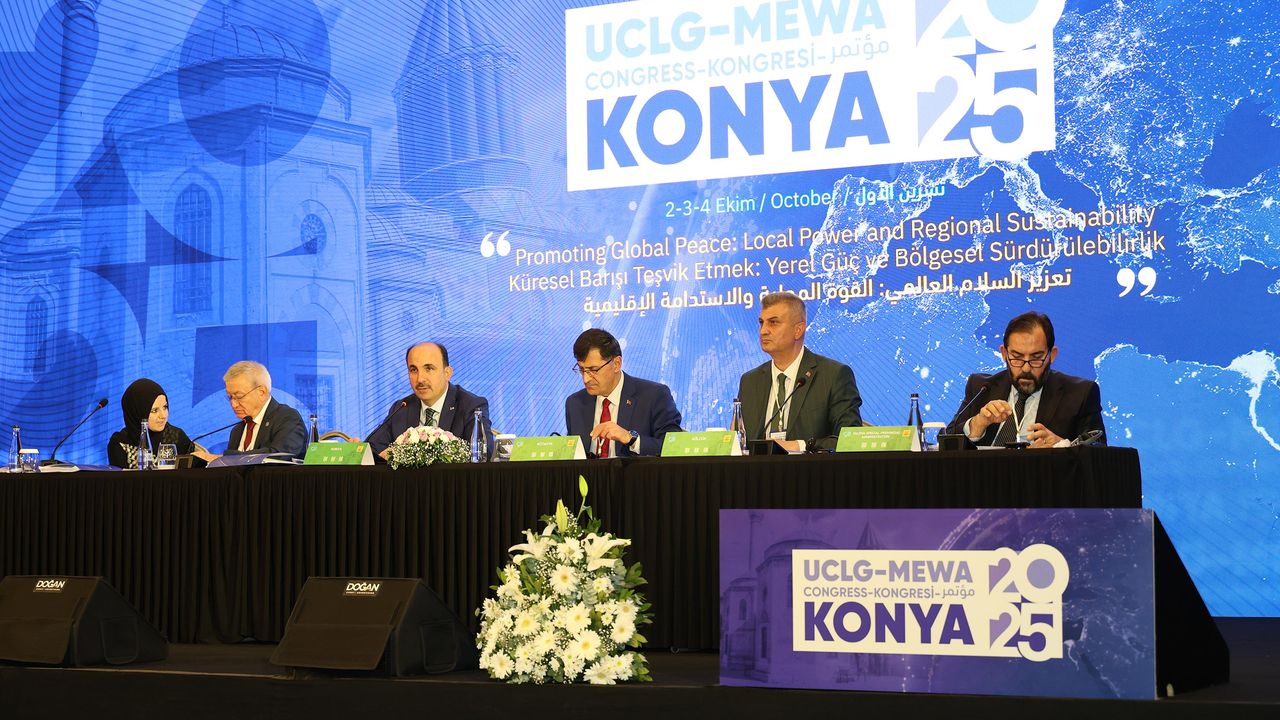 UCLG-MEWA Kongresi kapsamında düzenlenen Genel Kurul’u yöneten UCLG ve Konya Büyükşehir Belediye Başkanı Uğur İbrahim Altay, El-Halil Belediye Başkanı Tayseer Abu Sneineh’in yeni dönem başkanlığını genel kurulun oylarına sundu.
