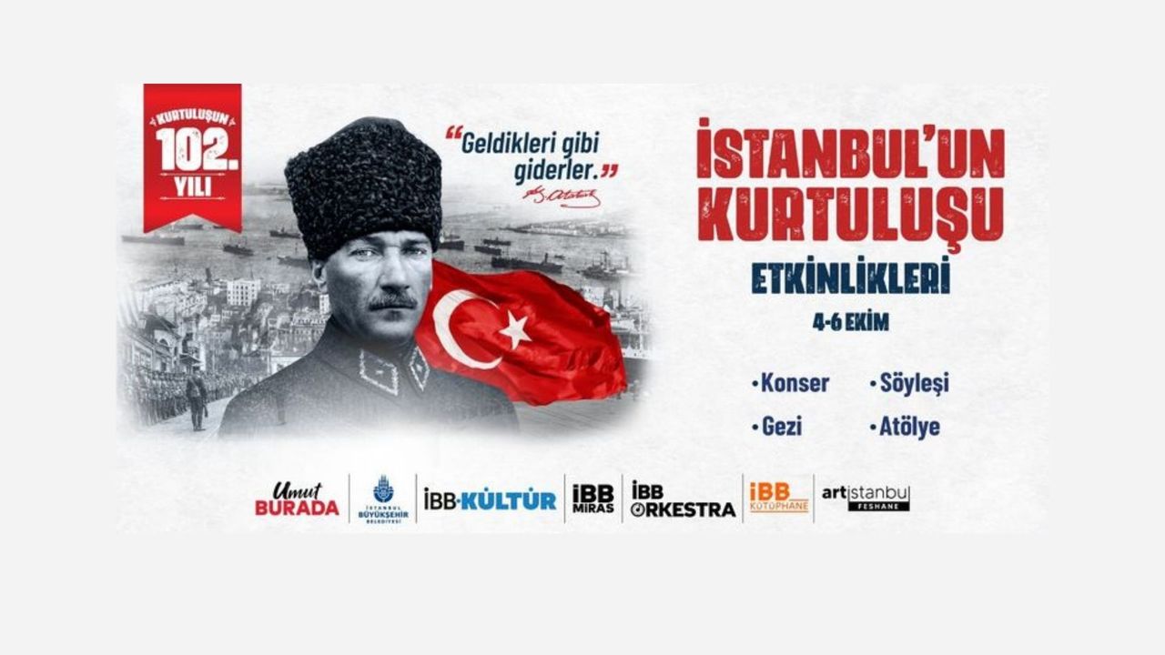 İstanbul Büyükşehir Belediyesi (İBB), İstanbul’un düşman işgalinden kurtuluşunun 102. yılını, her yıl olduğu gibi bu yıl da büyük bir coşkuyla kutlamaya hazırlanıyor. 4-6 Ekim tarihleri arasında gerçekleştirilecek çeşitli etkinliklerle İstanbullular, şehrin kurtuluşunu atölyeler, konserler, geziler ve söyleşilerle anacak.