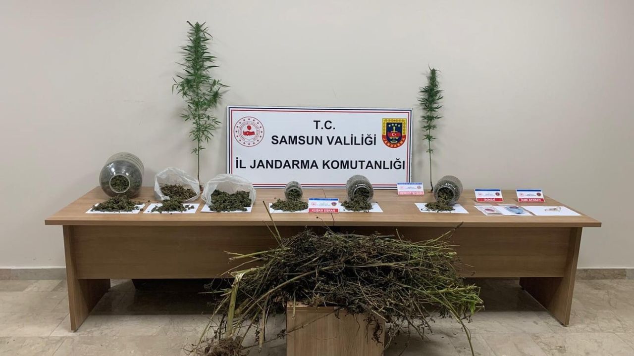 Edinilen bilgilere göre, Samsun İl Jandarma Komutanlığı İstihbarat, Narkotik Şube ve Terme İlçe Jandarma Komutanlığı ekipleri, S.A.(27), E.E.(29), Ş.I.(65) ve A.I.(28) isimli şahısların uyuşturucu madde bulundurdukları bilgisine ulaştı. Şüphelilerin ikametlerinde ve fındık bahçesinde arama yapıldı. Yapılan aramalarda ikametlerde ve fındık bahçesinde saklanmış çuval içindeki bidonlarda 10 kilo 540 gram kubar esrar, 3 gram bonzai, sıvılaştırılmış bonzai (AME) maddesi enjekte edilmiş mendil, 2 kök kenevir bitkisi ve 1 adet uyuşturucu kullanma aparatı ele geçirildi.Olayla ilgili Ş.I. isimli şahıs gözaltına alınırken soruşturma devam ediyor.