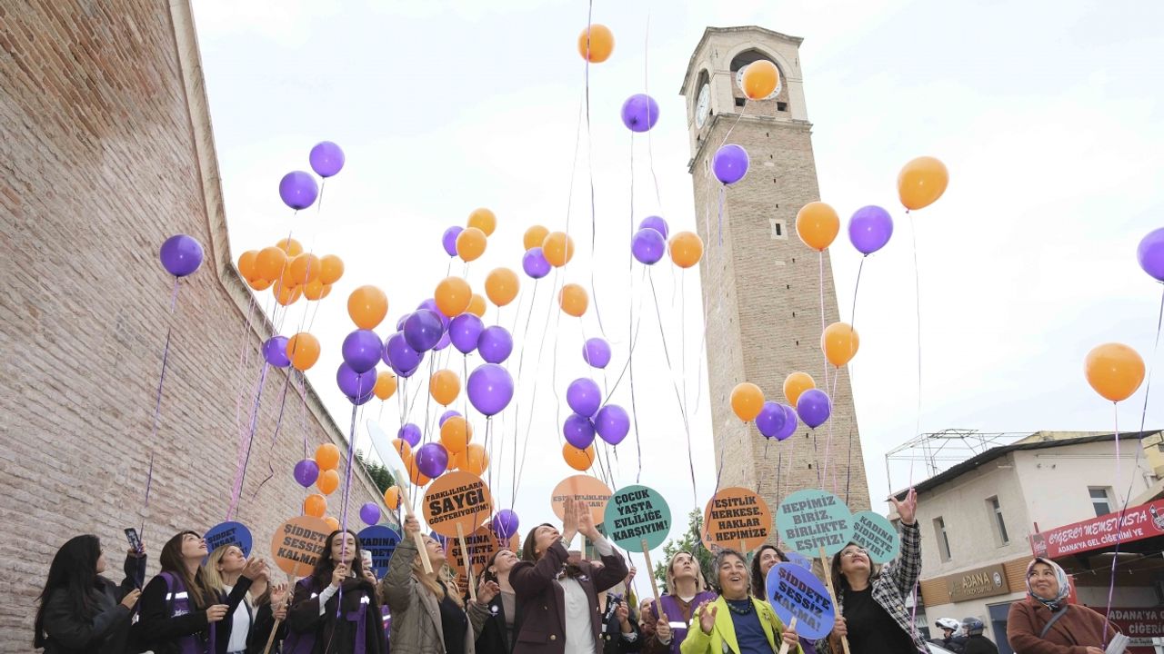 Tarihi Büyüksaat Önü'nde bir araya gelen kadınlar mor ve turuncu balonlara dileklerini yazarak, şiddetsiz bir dünya dileyip balonlarını uçurdu. Tarihi Büyüksaat Önü'nde ve Tarihi Adana Çarşı'da farkındalık çalışması kapsamında kadına yönelik şiddetle ile ilgili bilgilendirme broşürü dağıttı.