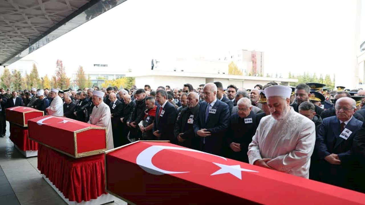 Cenaze törenine TBMM Başkanı Numan Kurtulmuş, Cumhurbaşkanı Yardımcısı Cevdet Yılmaz, Millî Savunma Bakanı Yaşar Güler, Dışişleri Bakanı Hakan Fidan, Hazine ve Maliye Bakanı Mehmet Şimşek, Tarım ve Orman Bakanı İbrahim Yumaklı, Genelkurmay Başkanı Orgeneral Selçuk Bayraktaroğlu, Kuvvet Komutanları, şehitlerimizin yakınları ve vatandaşlar katıldı. Şehitlerimizin tabutları tekbirler eşliğinde top arabasına konuldu.