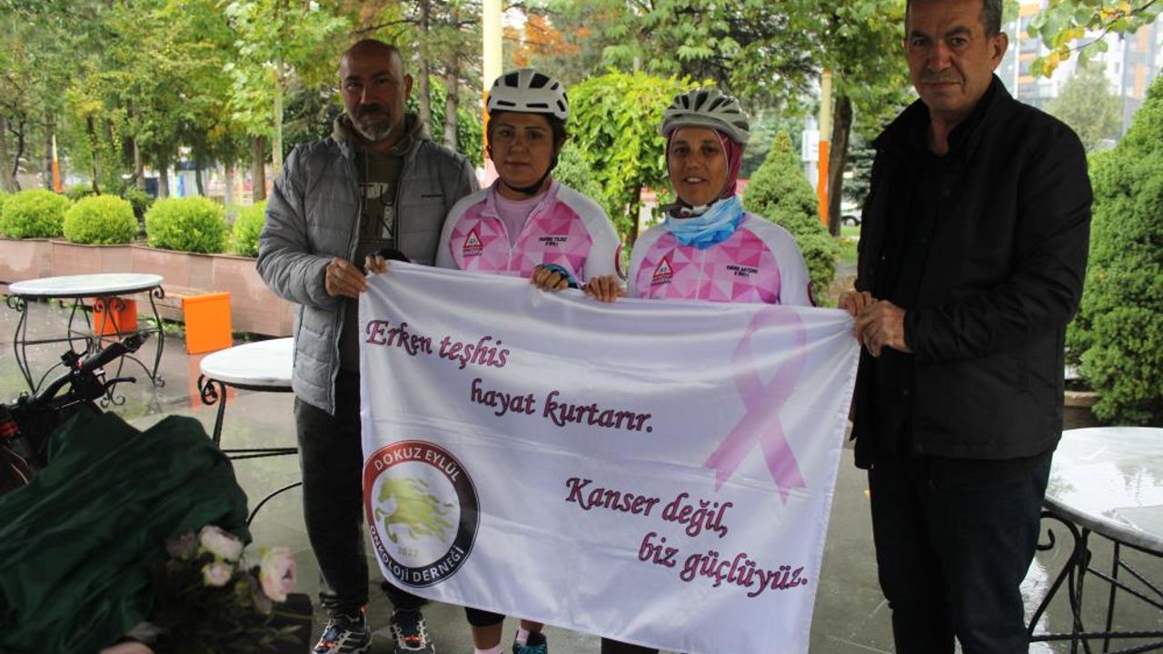 İzmir'de yaşayan Emine Aktürk ile Aydın'da yaşayan Fadime Yıldız; yıllardır gördükleri kanser tedavisinin ardından hastalığı yenerek sağlıklarına kavuştu. Meme Kanseri Farkındalık Ayı dolayısıyla bisikletleriyle Konya'dan hareket eden Aktürk ve Aydın; Kayseri'ye geldi.