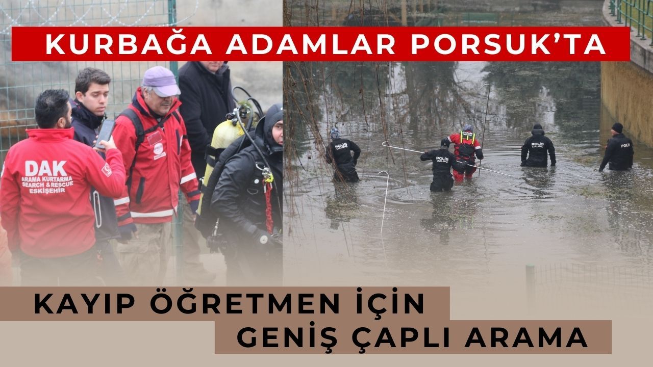 Eskişehir’de 7 gündür kendisinden haber alınamayan 51 yaşındaki Türkçe öğretmeni Tuncay Arslan’ı bulmak için başlatılan arama çalışmaları sürüyor. Porsuk Çayı’nın Gökmeydan Mahallesi bölümünde yoğunlaştırılan çalışmalara bugün Ankara Emniyet Müdürlüğü Koruma Şube Müdürlüğü Su Altı Grup Amirliği’ne bağlı “Kurbağa Adamlar” dalış timi de destek verdi.