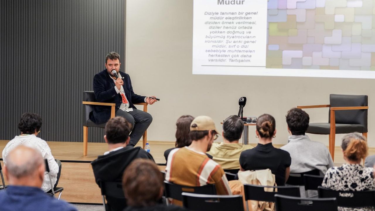 Erdal Ozan Metin, Gazi Mustafa Kemal Atatürk’ün sanat ve özellikle tiyatroya verdiği önemden söz ederek, Cumhuriyetin kuruluş yıllarında yapılan kültürel reformları ve tiyatro alanında gerçekleştirilen yapısal düzenlemeleri detaylı biçimde aktardı. Tiyatronun Cumhuriyet ideali içindeki yerinin altını çizen Metin, tiyatronun sadece bir sahne sanatı olmadığını; aynı zamanda toplumu eğiten, dönüştüren ve ortak bir bilinç oluşturan güçlü bir araç olduğunu vurguladı.Söyleşide ayrıca, geçmişte "tiyatrocu" kimliğinin nasıl tanımlandığı ve bu kimliğin günümüzde nasıl bir dönüşüm geçirdiği de kapsamlı şekilde ele alındı. Değişen toplumsal yapı, dijitalleşme ve kültürel çeşitlilik gibi etkenlerin tiyatro üzerindeki etkileri irdelenirken, geleneksel değerlerle çağdaş anlayışların nasıl harmanlanabileceği konusunda çeşitli fikirler ortaya kondu. Katılımcıların yoğun ilgisiyle geçen söyleşi, interaktif bir yapıya büründü. Sanatseverler, düşüncelerini ve sorularını doğrudan Erdal Ozan Metin ile paylaşma fırsatı buldu.