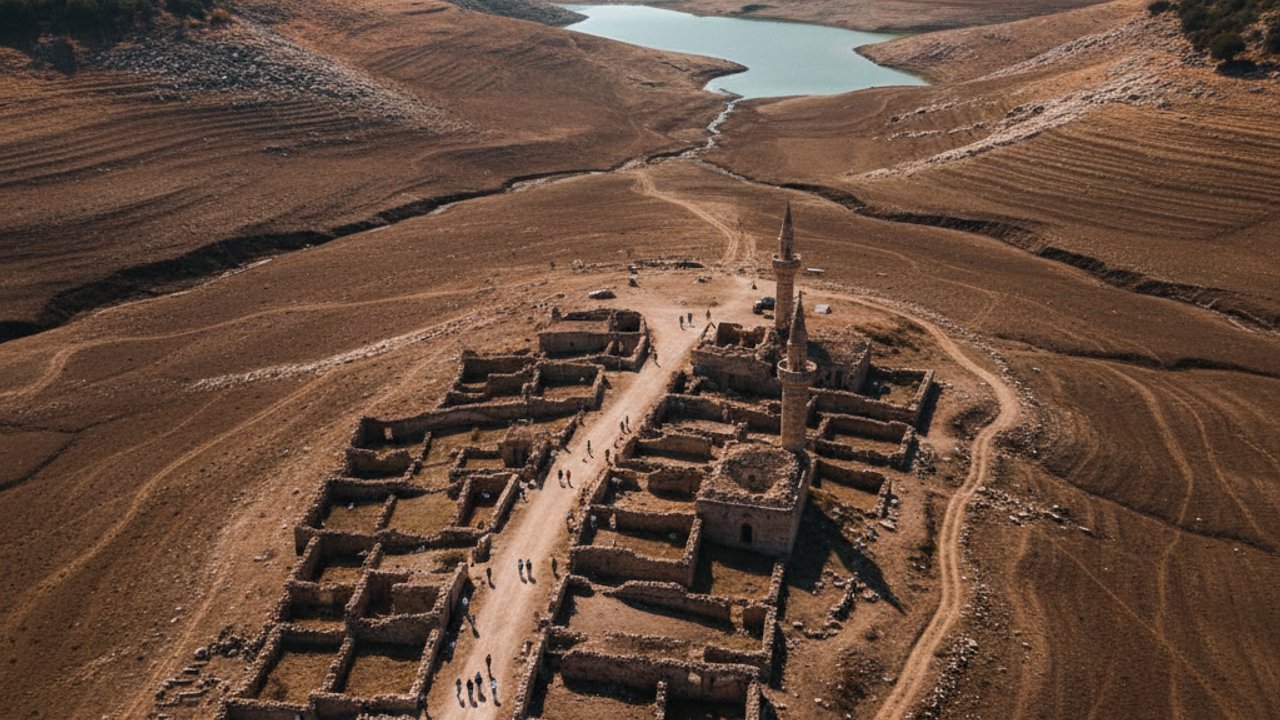 Ortaya Çıkan Yerleşim: Baraj yapımı sırasında 2014 yılında sular altında kalan Akine ve Ormancık mahallelerinin eski yerleşim alanları yeniden görünür hale geldi.